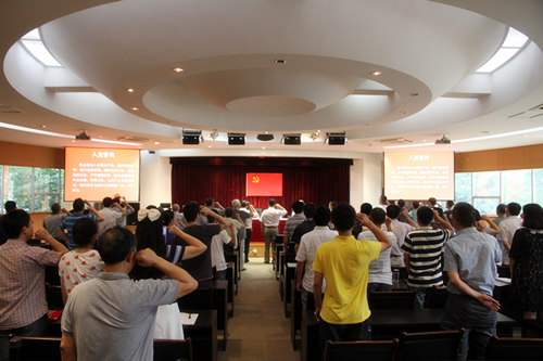会议还组织了预备党员在党旗前郑重宣誓,老党员重温入党誓词、所长讲党课等活动。