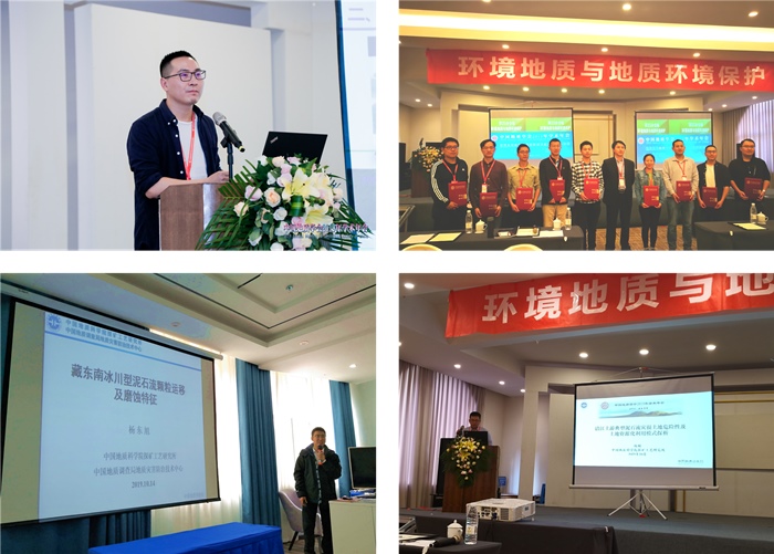 根据会议安排,10月14日,杨东旭在第六届青年地学论坛第5分会场“工程地质与地质灾害”做了“藏东南冰川型泥石流颗粒运移及磨蚀特征”的报告,报告通过野外调查和室内实验分析,介绍了藏东南海洋性冰川泥石流的颗粒沿程演化特征、侵蚀输移规律及其对排导槽等防治工程的磨蚀机制,引起了国内青年地质同行浓厚兴趣,并进行了讨论交流。10月18日,黄海、杨顺在中国地质学会2019年学术年会25分会场“环境地质”分别做了“汶川震区雍家沟泥石流多期次治理及防治效果评价”和“涪江上游泥石流灾损土地资源化利用模式”的报告,分别介绍了启航彩泥石流团队在多期次治理技术上最新研究成果和涪江上游高山峡谷区泥石流灾损土地资源化利用及建议,会上与环境地质领域同行进行了深入交流,其中,黄海获得“优秀论文奖”。