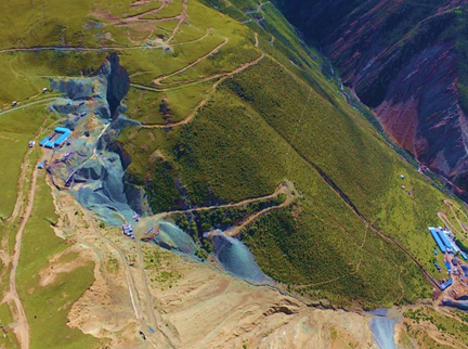 无人机航拍罗布莎矿区露天采坑及堆渣体全貌