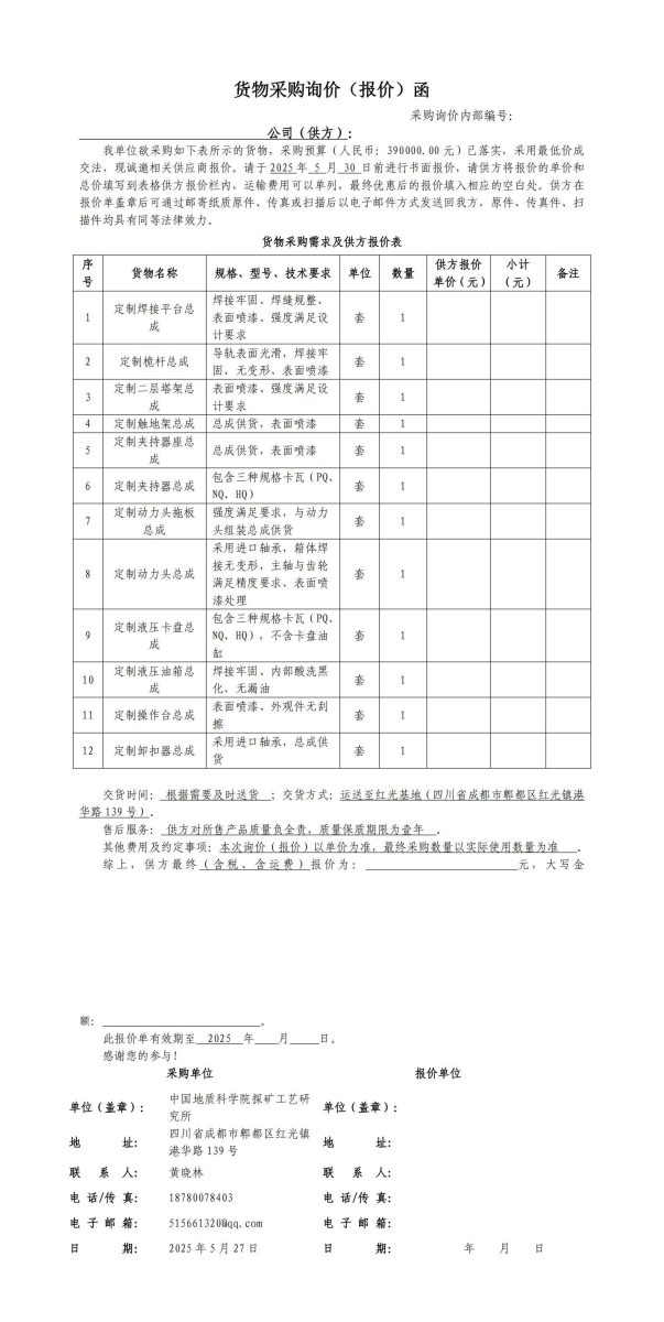 加工测试采购询价(报价)函