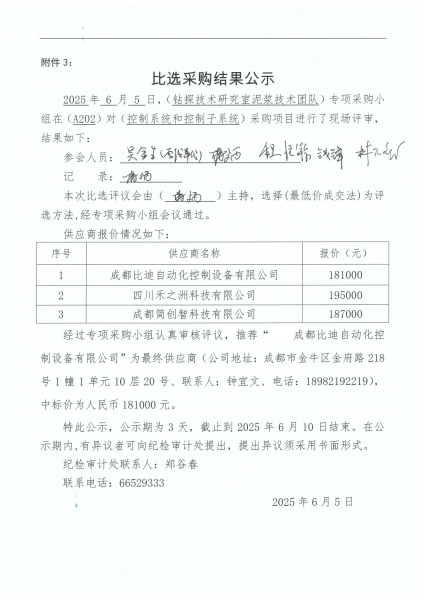 比选采购结果公示