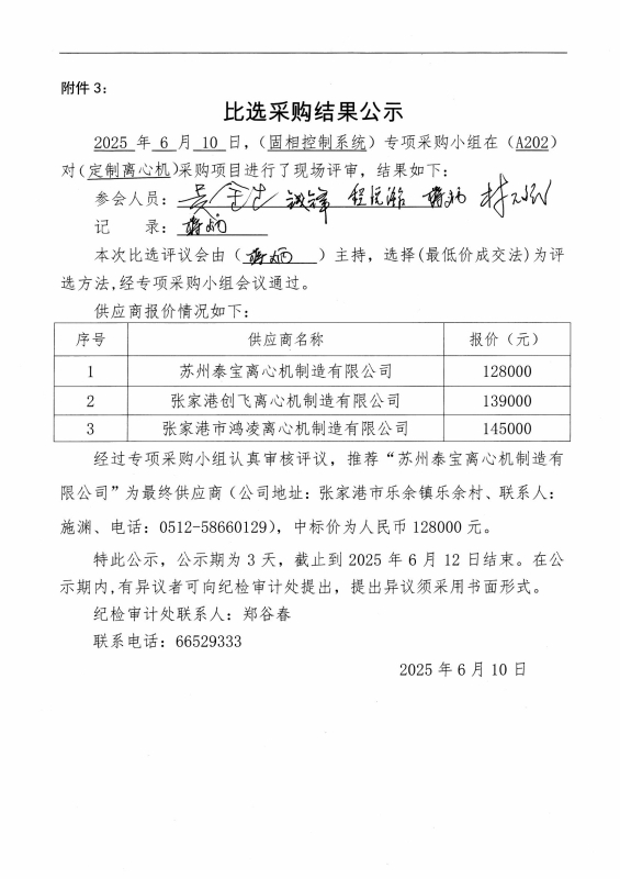 固相控制系统比选采购结果公示